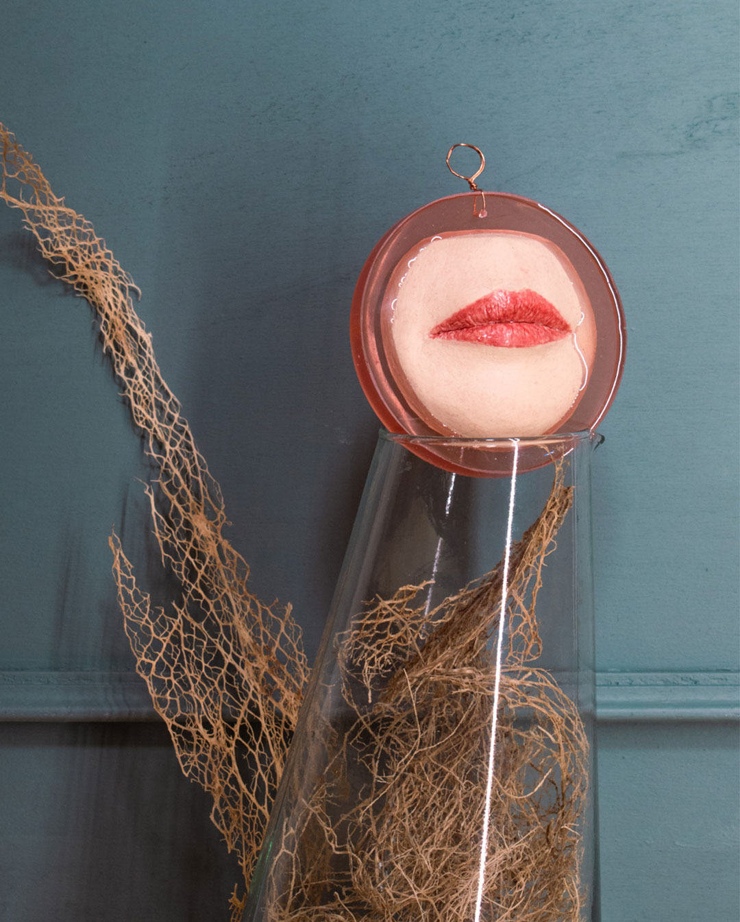 Cornice in resina trasparente rosa, anatomia in gomma siliconica
