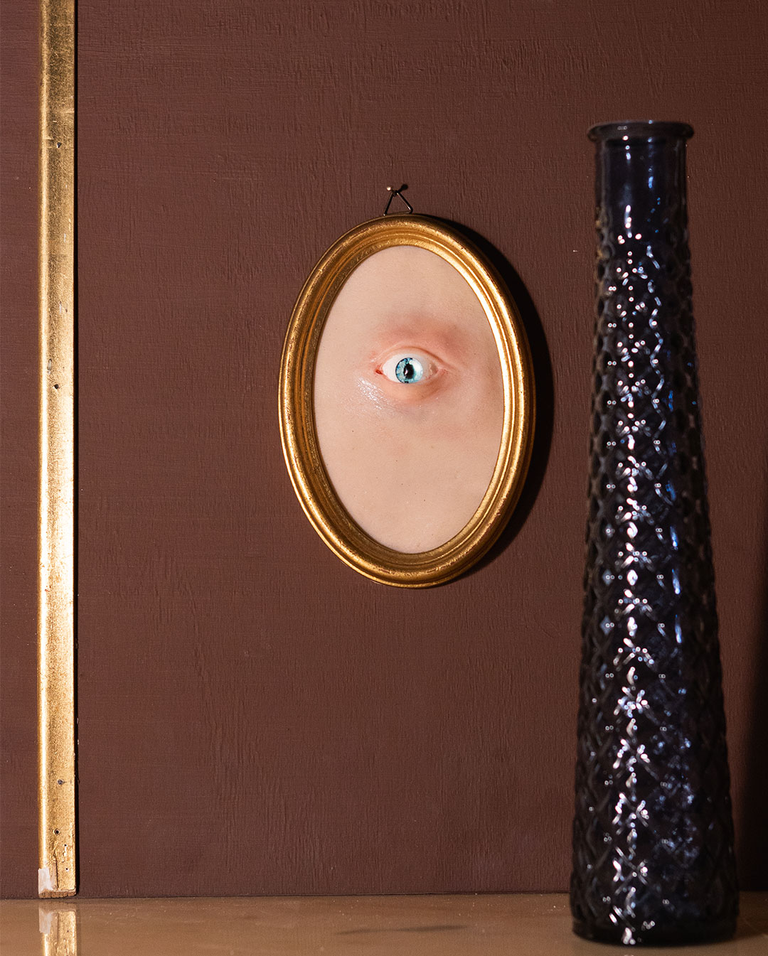Cornice vintage, pelle in silicone, occhio in resina e vetro