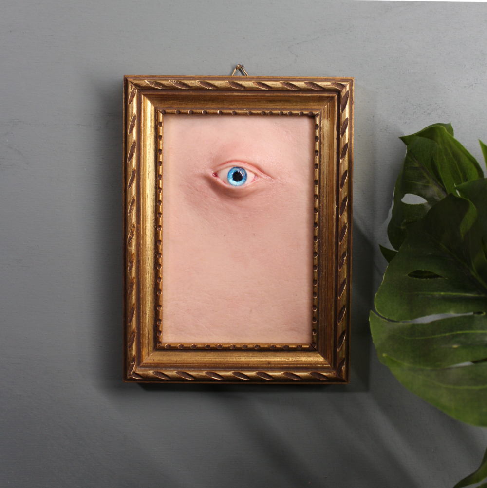 Cornice vintage, pelle in silicone, occhio in resina e vetro