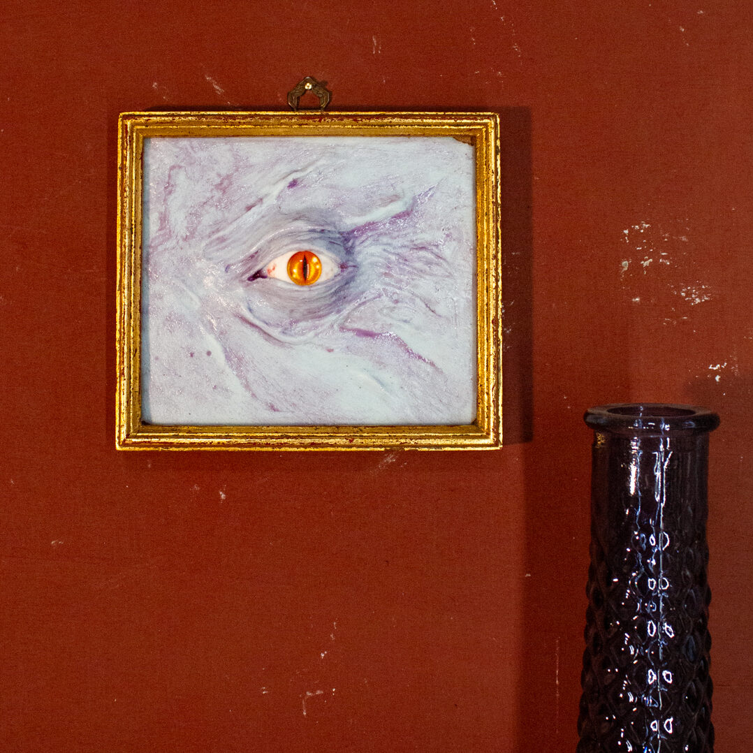 Cornice vintage, pelle in silicone, occhio in resina e vetro