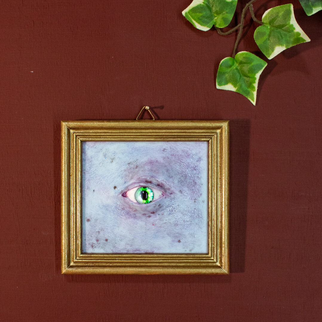 Cornice vintage, pelle in silicone, occhio in resina e vetro