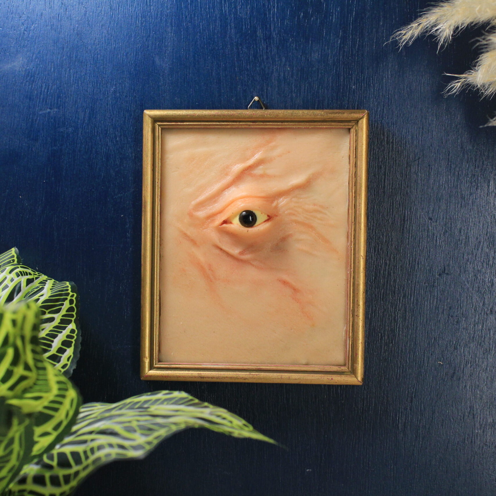 Cornice vintage, pelle in silicone, occhio in resina e vetro